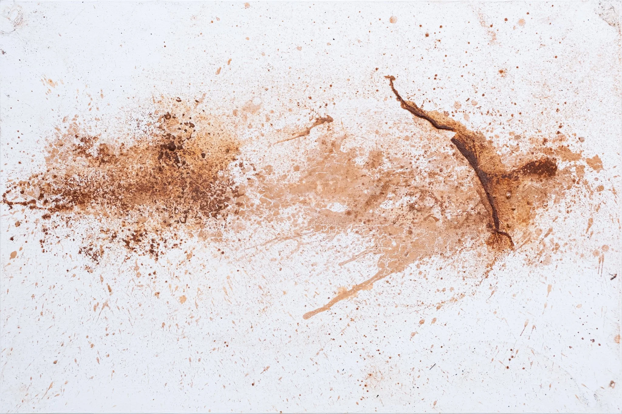 Íris María paints with the weather and refers to her paintings and sculptures as Weathered Works, where weathering and the passage of time play a key role in her artistic process. In collaboration with the weather that shapes the artworks, she documents weather with her paintings. She puts meaning in the act of painting with Icelandic materials she has collected from mountains, glaciers, and rivers. She paints outdoors under the open sky, makes oil colors out of Icelandic materials and paints on canvas, allowing the weather to take over the creative process and shape the work over time. She started painting with the weather six years ago. In this exhibition she presents a collection of weathered works. Íris María explores the boundaries between art forms, presenting paintings, sculptures, sound pieces, documentation, staging, transformations, installations, and performances. She considers people, the weather, time, circumstances, and other processes as guiding participants in her artistic practice and as unavoidable collaborators.