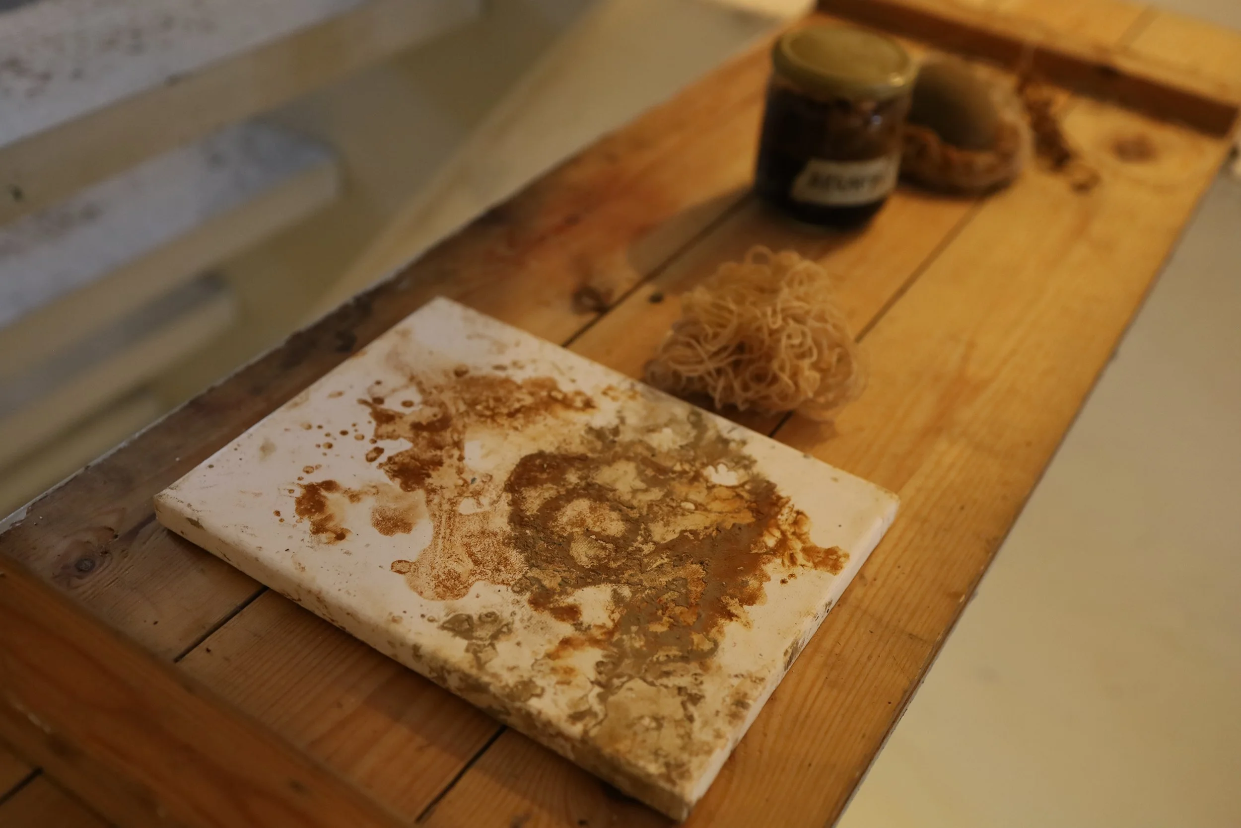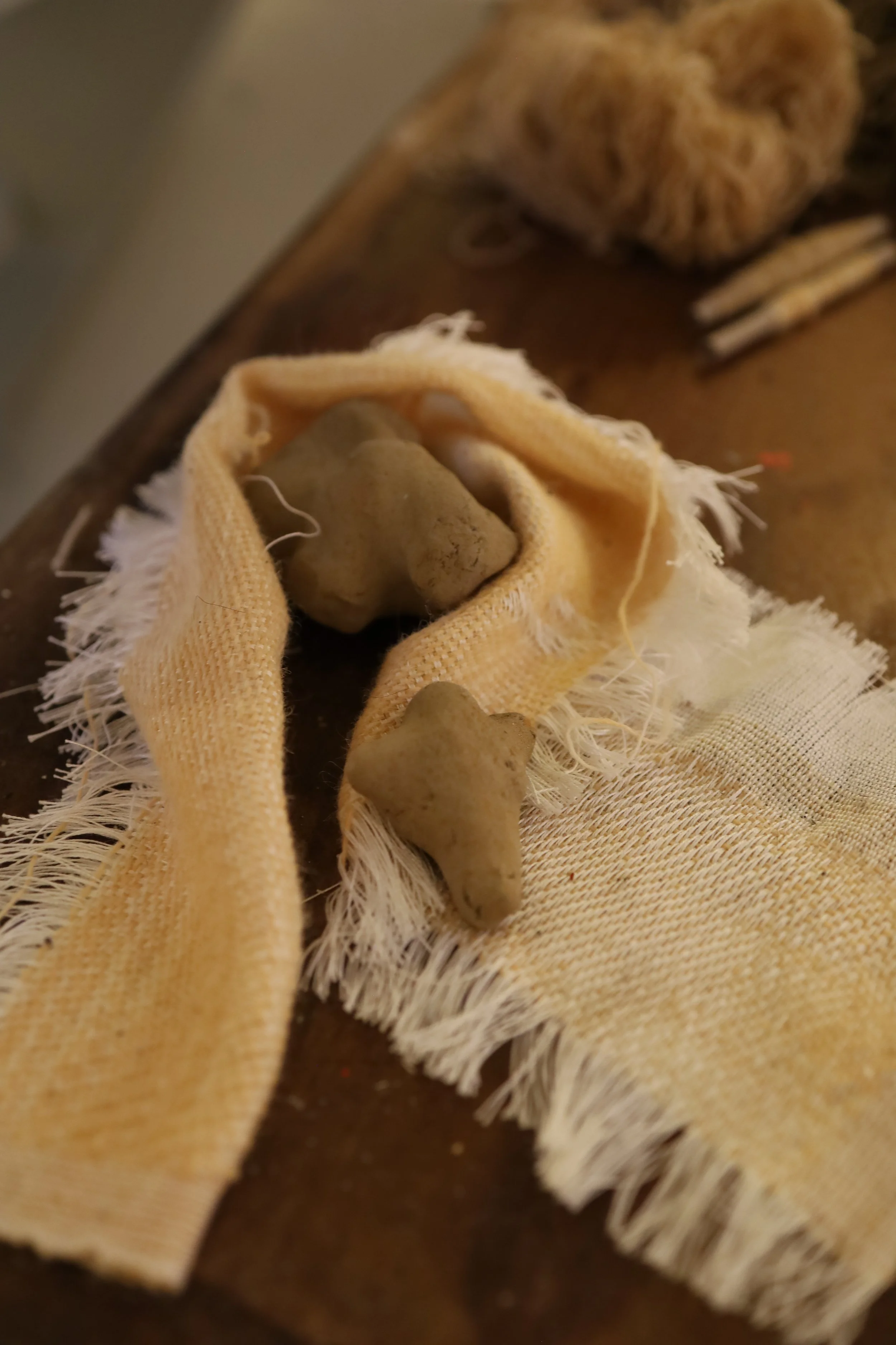 Woven landscape, a collaboration between Sarah Finkle, Íris María Leifsdóttir and Antonía Bergþórsdóttir. They weave into the landscape by the roots of Akrafjall with Icelandic wool they spun and coloured with materials from the surroundings of Akranes. They document the process with pinhole cameras and video work The artwork was created by Akrafjall and in the lighthouse.