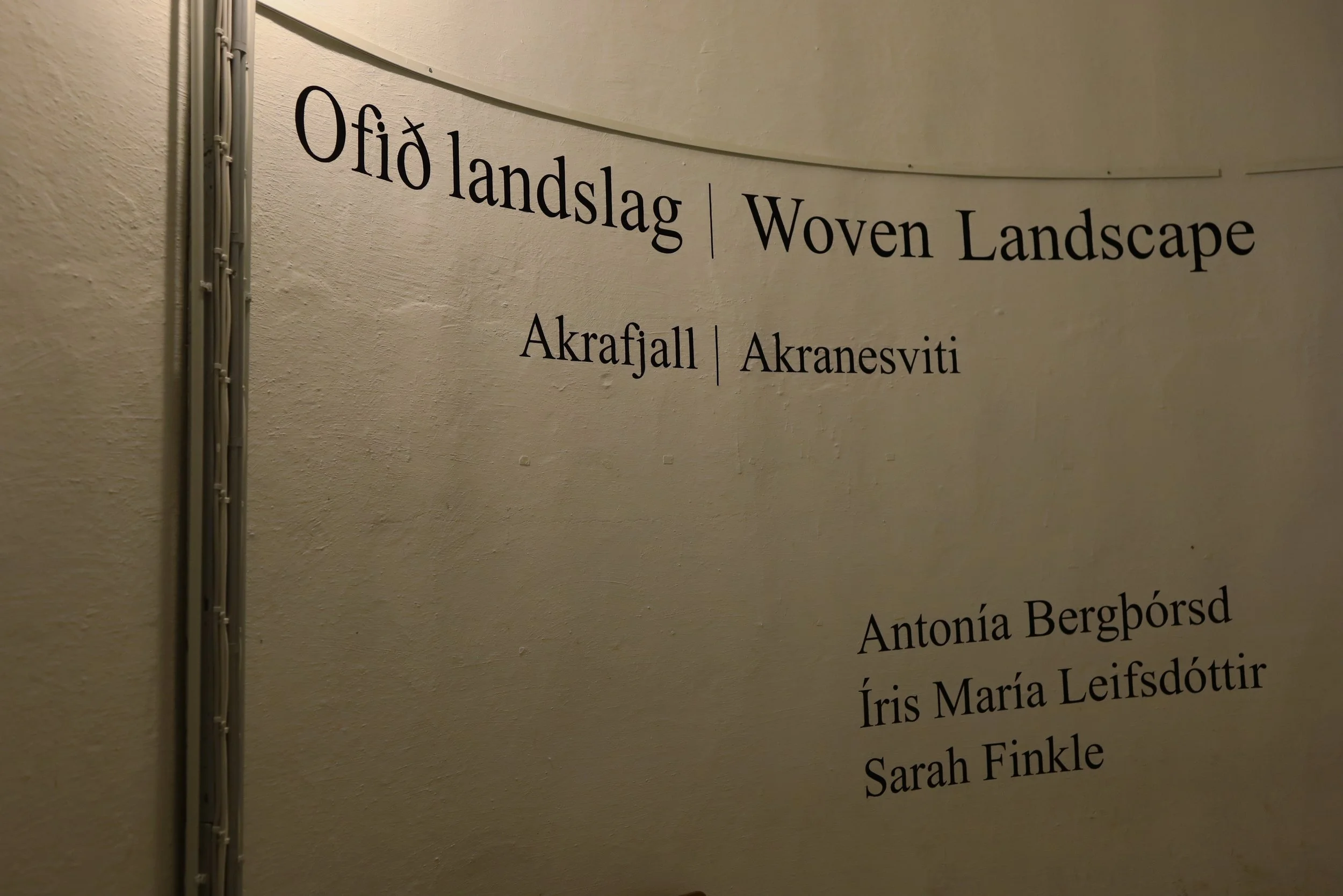 Ofið landslag er samsýning Sarah Finkle, Írisar Maríu Leifsdóttur og Antoníu Bergþórsdóttur. Þær vefa í landslagið við rætur Akrafjalls með ull sem þær spunnu og lituðu með jarðefnum frá nærumhverfi Akraneskaupstaðar. Þær skrásetja ferlið með pinhole myndavél og video verkum og sýna verk sem urðu til á Akrafjalli og við vitann.