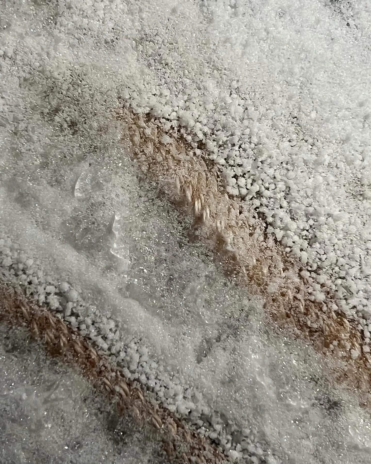 They invite the audience into the action of the art-making process. This acts to highlight the process as a crucial element to fully seeing, understanding, and feeling the resulting phenomenons. The artworks activate both the material and the body of the artists used to transform and transfer materials from one medium to another. The process of letting time and glacial materials transfer these mediums into anew lets these objects continue to live in different time scales, and highlights the ongoing evolving nature of the works.